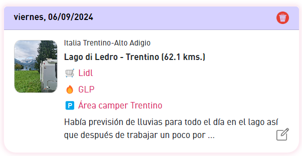 Además, puedes añadir notas diarias y fotos, convirtiendo tu viaje en un diario visual que podrás revisar y compartir en la comunidad de Vibravan. Es como tener un cuaderno de bitácora digital que te ayuda a recordar cada detalle de tu aventura.